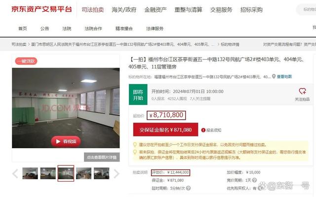 近日,厦门市思明区人民法院在京东法拍平台上架了一批民航广场的法拍房,包括7套住宅、1间店面和13个车位,起拍价合计2875.11万元。