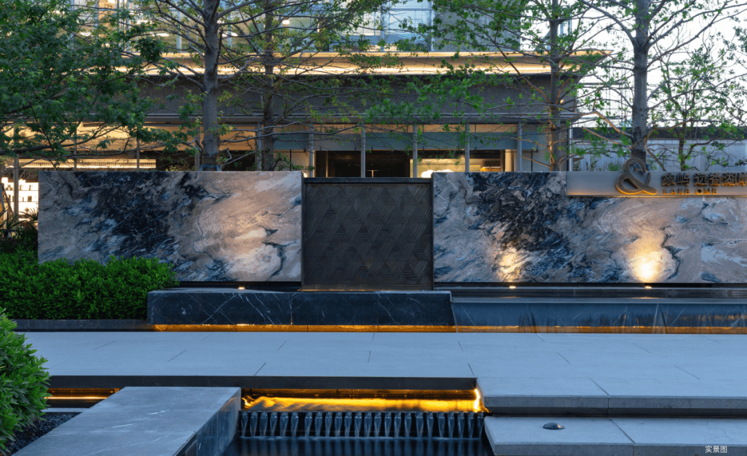 功能性与美学性更好的大面铝板加玻璃(局部使用涂料),少量石材外立面,整体呈现出现代主义建筑风格,让楼体显得更轻盈灵动,石材的使用则赋予了建筑大气与稳健的品格,让立面呈现出精致典雅的静谧感受,光影交错,无不彰显业主的尊崇身份。