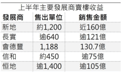 香港五大发展商上半年的卖楼收益 图源:中原地产香港