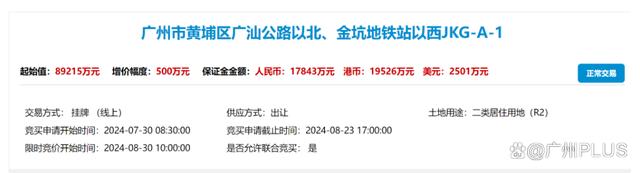 随后,这宗地也在广州市公共资源交易中心挂牌,即将在8月30日出让。
