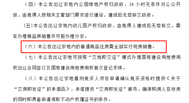 但值得一提是,该地块在竞拍时,提出了新的要求:本公告出让宗地内的普通商品住房需全部实行现房销售。