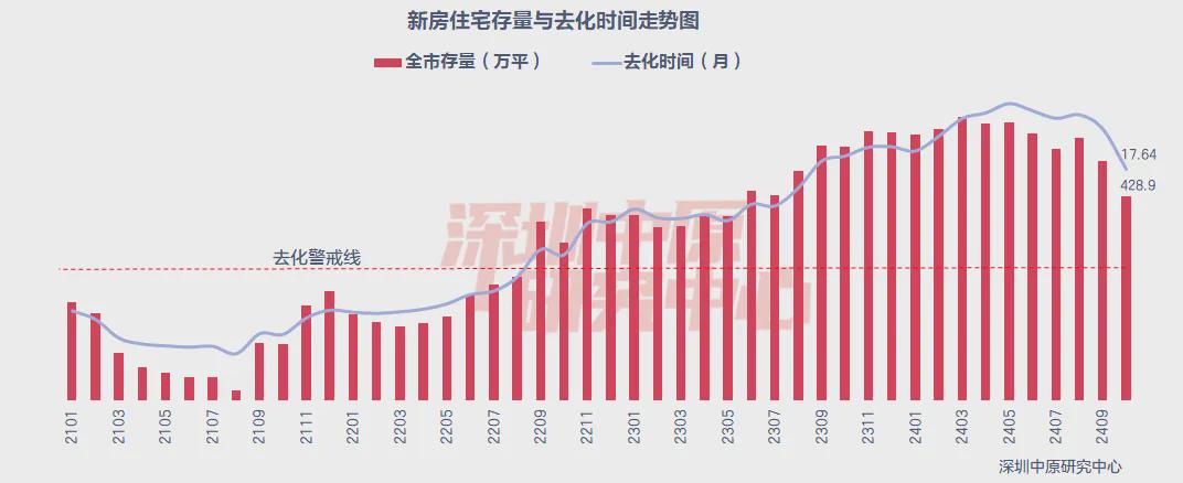 10月底,深圳全市录得的新房住宅存量为428.9万㎡,环比↓10.2%。