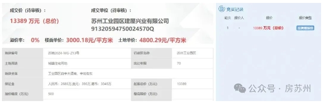 建屋以底价竞得唯亭Z13号地块,成交楼面价3000元/m²,或打造人才公寓?!