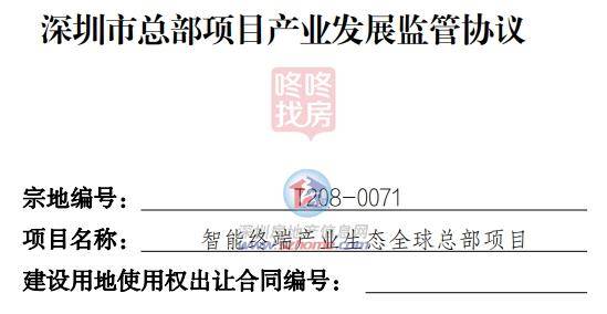 根据产业发展监管协议显示,该地块将建设智能终端产业生产全球总部项目。
