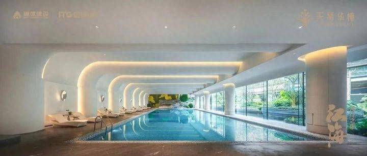 ② 约2300㎡双会所,即海洋美学会所,内设私宴厅、恒温泳池、亲子嬉水池、健身房、茶室、书吧等活动空间,仅服务124户业主。
