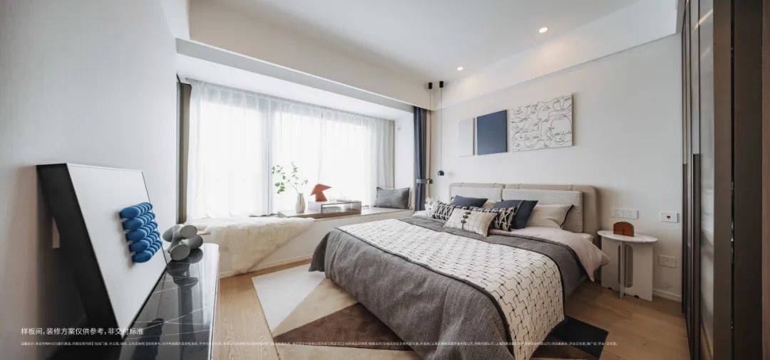 这套样板间的主卧还是套房设计,方便主人梳洗换衣。尺度感十足,放下衣柜和床之后,并不觉得拥挤。