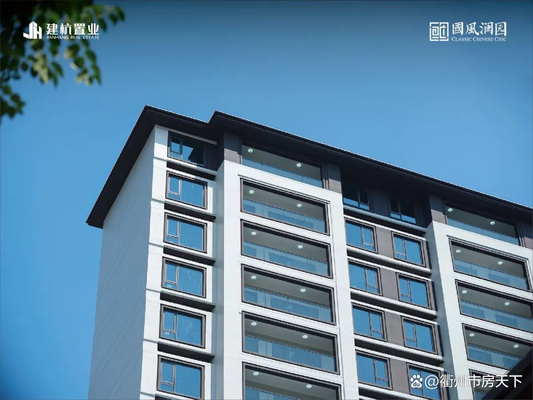 而国风澜园的颜值,第一眼,就会吸引你的视线。外立面整体采用了面砖搭配深色玻璃,将古典与现代风格融合,呈现精致、典雅的美学建筑。在我看来,这是衢州市场上少有的“高级感建筑”:大气、通透、时尚……