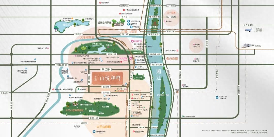 此外,项目虽然不临主干道,但能很快上潭州大道、潇湘大道,往北可上绕城高速、湘府路快速路,形成地铁+主干道+高速的立体交通路网,便捷通达全城。