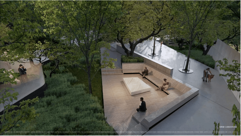 两轴的交汇处,也是未来各个业主交互频密的场所之一,在这里将打造大树剧场,树荫格子花园等互动性场所,在轻松自由间,增添闲暇生活的休闲体验。