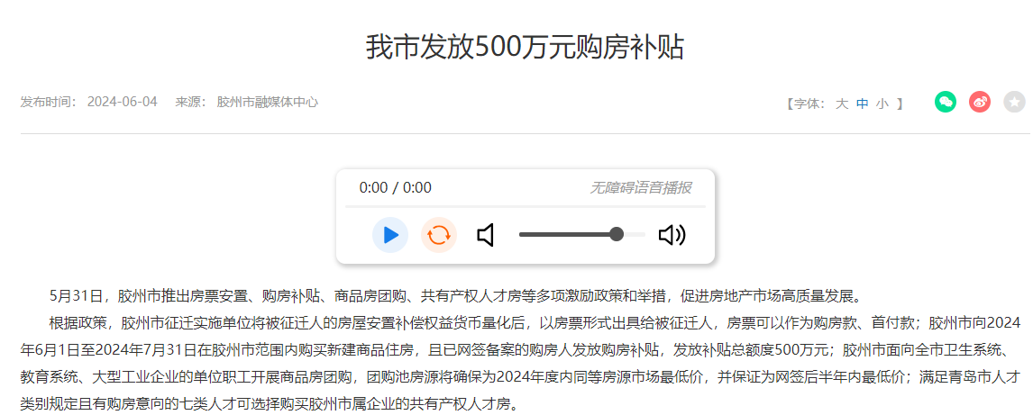 5月31日,胶州市推出房票安置、购房补贴、商品房团购、共有产权人才房等多项激励政策和举措,促进房地产市场高质量发展。