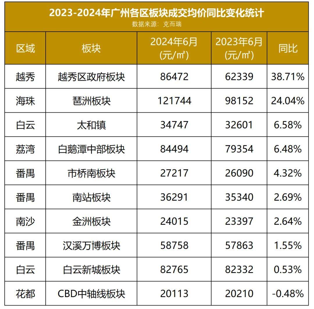 特别是越秀区政府与琶洲板块,其涨幅不仅超越了20%的大关,更在全市范围内独占鳌头。