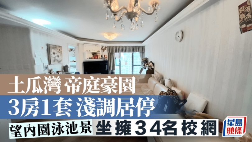 土瓜湾屋苑帝庭豪园,坐拥小学34名校网,受家庭客垂青。 是次介绍该屋苑2座高层A室,实用面积800方呎,3房1套设计,内栊附有精美布置,望屋苑内园泳池,现时叫价1360万,实用呎价约17000元。