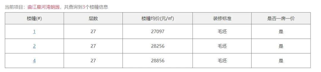 1#楼建面约278㎡、毛坯均价2.7万/㎡、2#楼建面约327㎡、毛坯均价2.82万/㎡、4#楼建面约327㎡、毛坯均价2.88万/㎡。