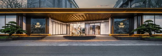 迎宾大道的两侧,浅米色的仿石材景墙与大堂入口遥相呼应,定制化的地面铺装、内嵌式的灯光照明等细节,将度假感、雅奢感和艺术感高度浓缩在每个日常生活场景中。