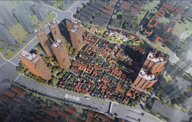 根据规划,项目总建筑面积约23万方,由6栋14-37层的高层住宅、部分改建保留的联排别墅、合院别墅以及部分配套用房组成。