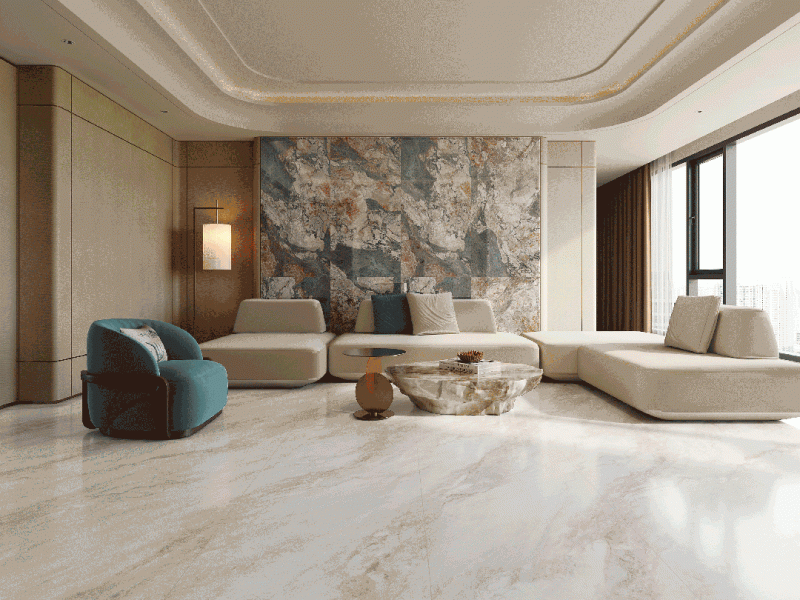 应用之境:宋境系列800x1600mm和800x1350mm的黄金规格适用于客厅、书房、茶室等多种空间,视觉效果简洁大气,符合中国住宅尺寸,让居者在喧嚣都市中,寻得一方宁静致远的“心之所”。