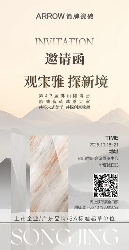 截至目前,箭牌瓷砖已获国家级高新技术企业认证,是5A标准起草单位,销售网络覆盖全球60余个国家和地区,成为多个头部房企和家装集团的战略合作伙伴。此次参展佛山陶博会,箭牌瓷砖将以硬核实力展现中国陶瓷品牌的全球竞争力。
