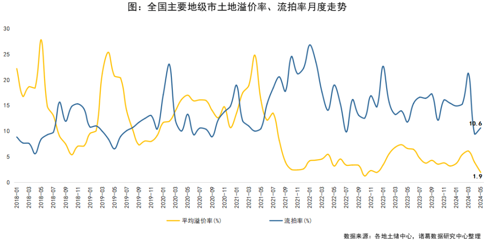 溢价率方面,随着土地市场热度持续下滑,溢价率降至2023年以来的最低水平。