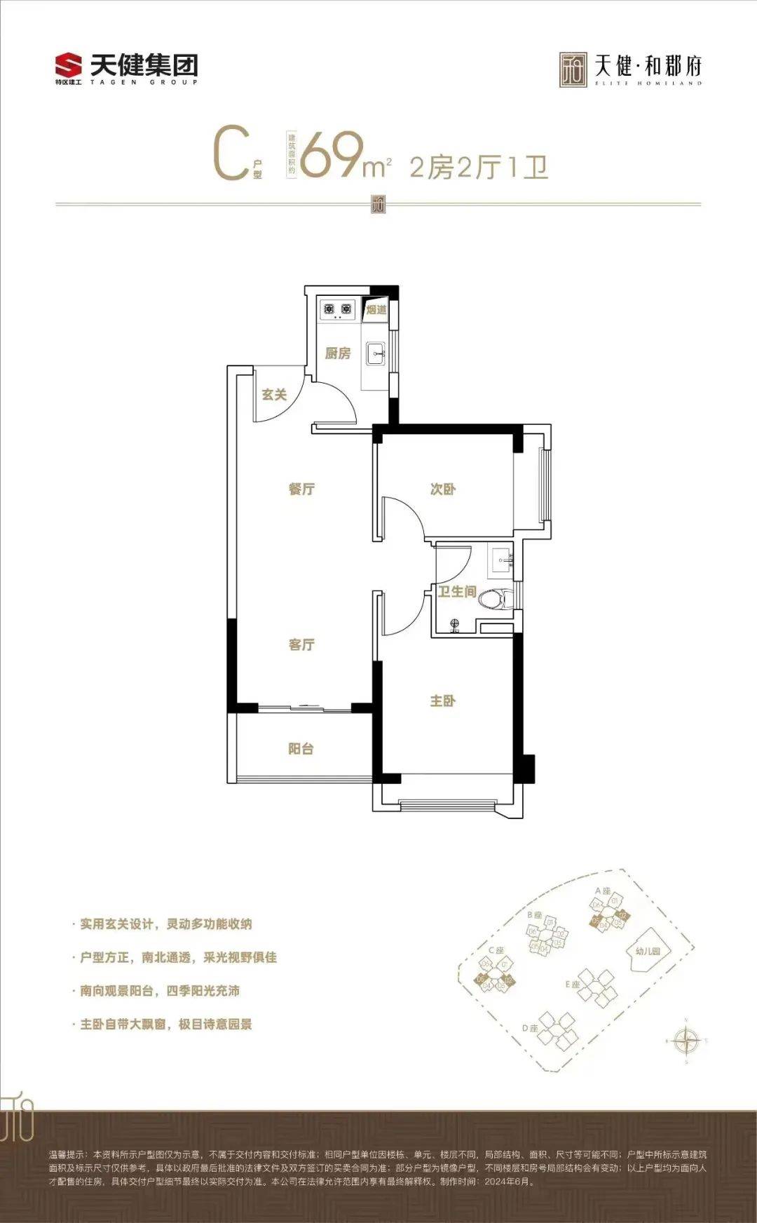 6月20日天健和郡府官宣已取得预售许可证,预计推出可售型人才房598套,主推户型为建面约69-89㎡2-3房,单价约4.39万/㎡起,均价约4.69万/平。