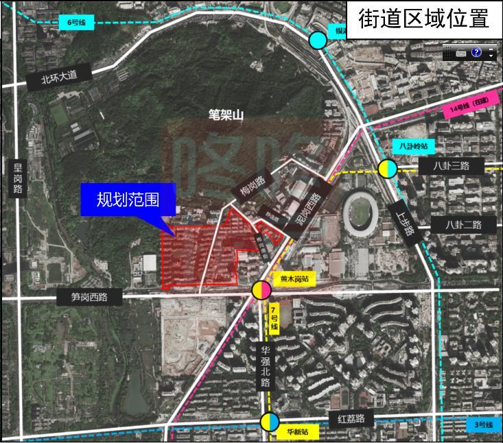 福田区华富街道华富北片区棚户区改造项目南临笋岗西路,东临市二医院,西邻笔架山公园,北邻华富中学与华新小学。