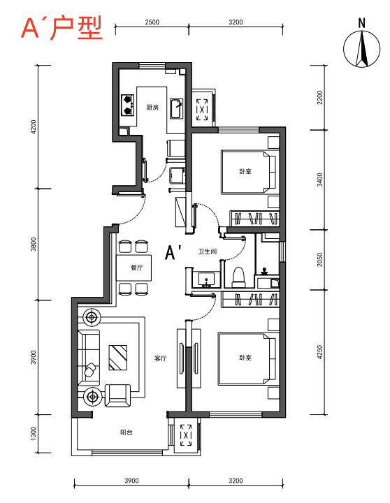 户型方面,先来看88平两居,A和A(反)的关系就是对称,格局都一样,A´和 A´(反)同理。从格局来看,A和A´最大的区别就是,A户型卫生间没窗户,A´户型卫生间有窗户,是明卫,所以优选A´户型。