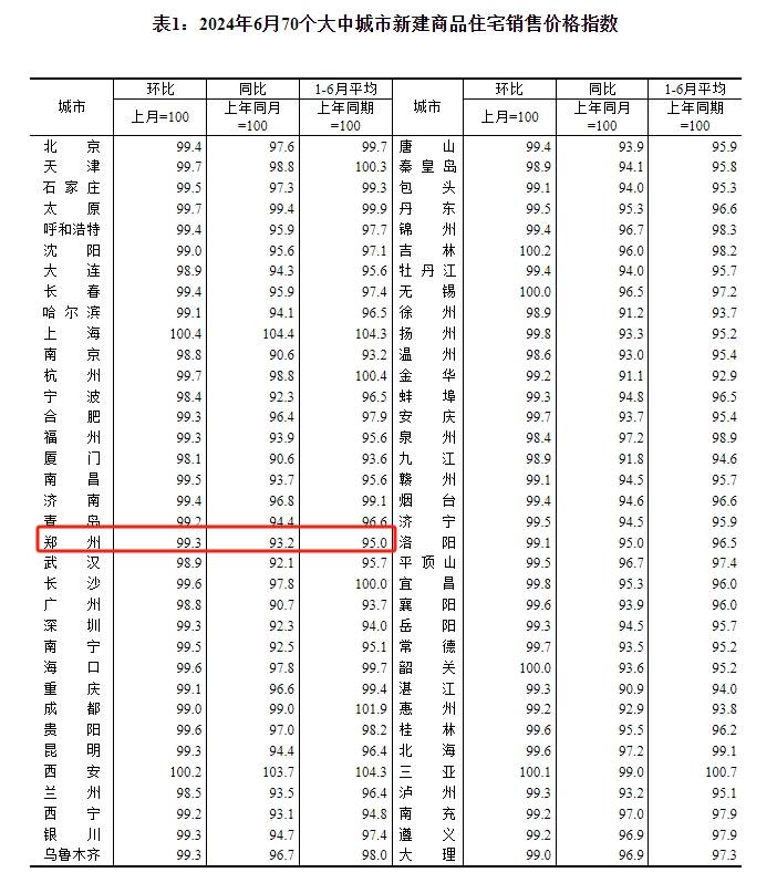 整体来看,6月份,70个大中城市中,各线城市商品住宅销售价格环比降幅总体收窄;同比下降,其中一线城市二手住宅同比降幅收窄。就郑州而言,郑州6月新房、二手房价格指数环比、同比继续下跌!