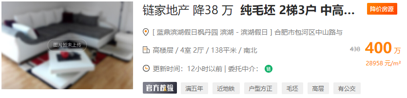 最近70城房价显示,合肥的二手房价格又降了!但最近滨湖有套房源,居然成交价还涨了55万。