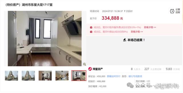 昨日,湖州老城区东星大厦一套房源成功拍出。