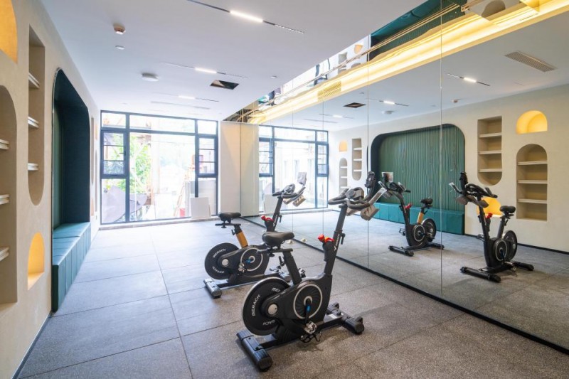 在空间利用方面,公寓更是做到了极致。洞洞板收纳系统可自由组合,满足通勤装备、运动器材等个性化存储需求,让每一件物品都有其专属的“家”。餐厨区采用嵌入式设计,将冰箱、洗衣机隐入定制柜体,搭配防滑水磨石卫浴,实现了实用性与美学的完美平衡。健身区配备全景落地窗,晨练者在跑步时可以俯瞰城市天际线,将健康管理融入日常场景,让运动成为一种享受。