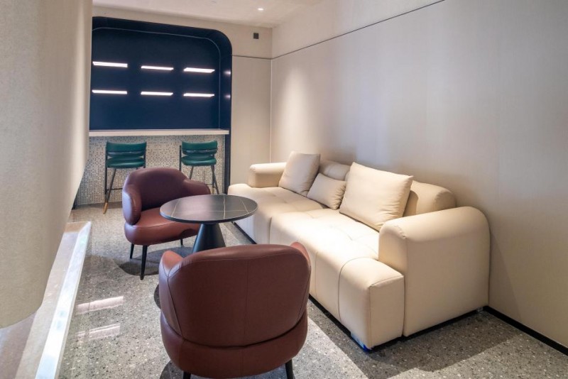 公寓的公共空间突破了传统“配套”的定义,构建了具备社交属性的生活场景,为科技人才们提供了一个交流互动、放松身心的平台。沙发区配备艺术书墙与高速 Wi-Fi,适合远程办公或候客时的短暂休憩,让科技从业者在忙碌的工作之余能够找到一片宁静的角落。拱形落地窗边的咖啡洽谈区,配备可移动白板与投影设备,成为创业者头脑风暴的理想场地,激发着无限的创意与灵感。多功能会议区支持 24 小时预约使用,满足自由职业者与小微团队的协作需求,为科技人才们的事业发展提供了有力支持。