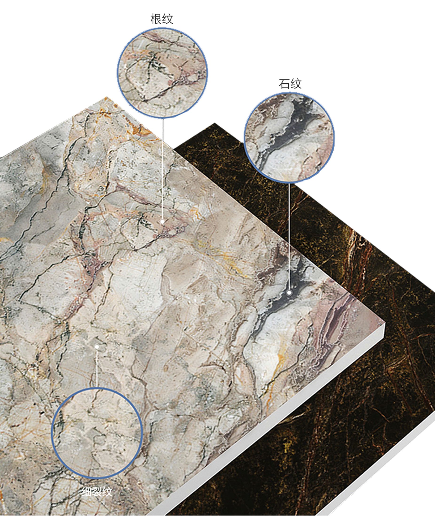 通过高清数码喷墨技术的运用,「昆仑山」系列细腻捕捉并还原了天然石材的节理与纹路,使肌理与花色完美交融。 亿级高像素喷墨釉面使得显色通透性大幅提升,纹理细节纤毫毕现。