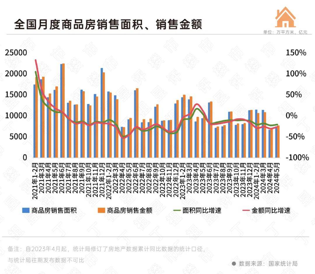宽松新政刺激全国商品房销售面积、金额低位回升,同比降幅持续收窄,新开工、竣工止跌企稳,不过房企投资开发热情不及一季度,开发投资额累计同比降幅连续3个月走扩至10.1%。