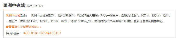 之前因为禹洲银河Park在建所以一直没有取得预售许可,现在禹洲商业综合体外立面已经做好了,所以最后两栋可以开售了。