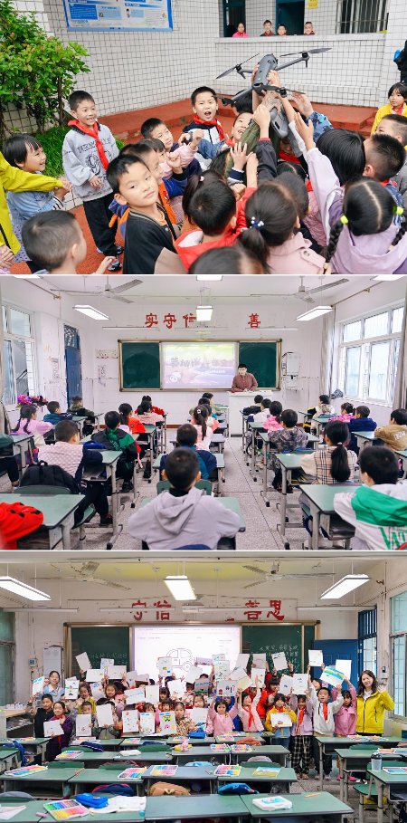 「爱有引力帮帮团」的成员各展所长,将莽灿灿AI课堂、无人机探秘、汽车知识科普与创意绘画等多元课程带到孩子身边。创新的教学方式如一扇扇新世界的大门,在孩子们好奇的目光中缓缓打开,欢声笑语不断在校园回荡,一颗颗探索未来的种子,正随着这份喜悦在心田里生根发芽。