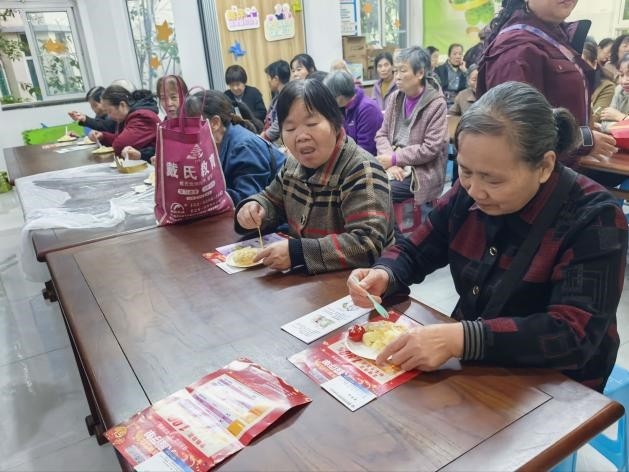 活动正式开始后,社工首先向到场的老年居民致以问候,随后邀请10月份生日的社区老人上台,全体人员共同唱响生日歌,温馨的旋律回荡在活动室中,台下居民纷纷挥手附和,为寿星们送上祝福。寿星代表分享了在社区生活的感受,言语间满是对社区关怀的感谢,现场氛围暖意融融。生日祝福环节结束后,志愿者有序为在场每位居民分发生日蛋糕与餐具,确保每位老人都能放心享用。分蛋糕过程中,志愿者主动协助行动不便的老人,耐心地为他们递上蛋糕与纸巾,老人们一边品尝香甜的蛋糕,一边与身边邻里交流畅谈,活动室里充满了欢声笑语。