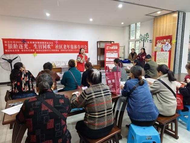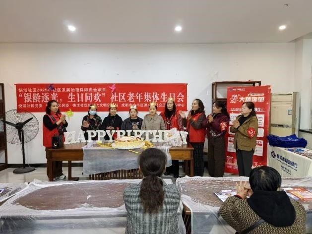 金秋十月,丹桂飘香,为丰富社区老年居民精神文化生活,营造温馨和睦的社区氛围,传递对老年群体的关怀与祝福,快活社区党委、居委联合新时代文明实践站、成都市金牛区源之心社会工作服务中心,于2025年10月22日上午在快活社区二楼活动室开展“银龄逐光·生日同欢”社区老年集体生日会活动,邀请社区老年居民共同参与,共享生日喜悦。
