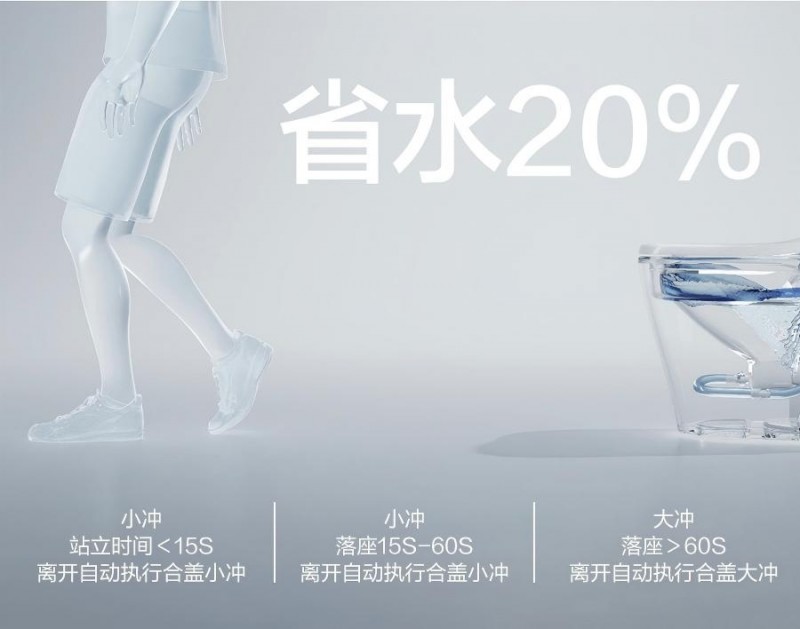 灵犀智感冲水系统:根据落座时长智能识别大小冲模式,兼顾洁净与节水。