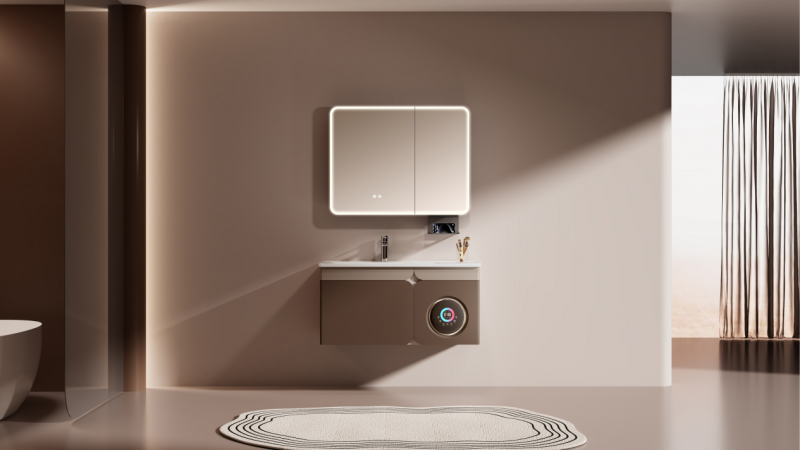 在空间场景,实现“功能集成与关怀”:锦柔系列洗烘一体浴室柜通过嵌入洗烘一体机、科学收纳与环保材料设计,兼顾美观与健康,精准满足母婴家庭及小户型用户的贴心需求。