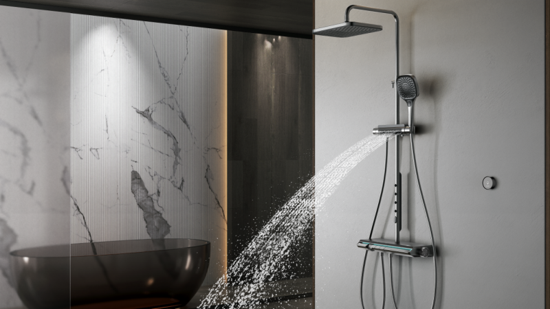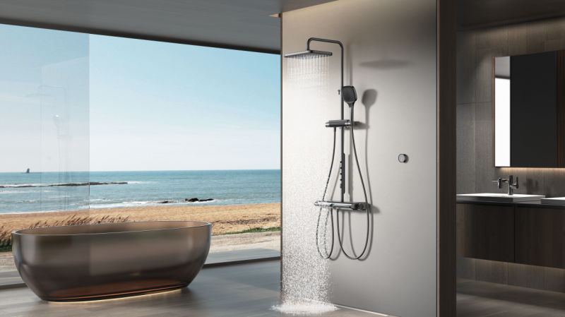 在沐浴场景,打造“身心焕活仪式”:T8零冷水按摩置物花洒集肩喷、背喷、手持按摩等多重出水模式、智能预排冷水及顶喷空涡增压技术于一身,为运动爱好者及久坐人群提供全身环绕按摩体验,将日常沐浴转化为恢复活力的健康仪式。