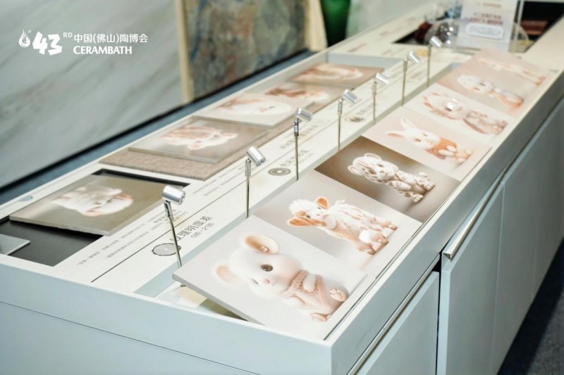 为了真实呈现800x1600mm瓷砖高清喷墨设备效果,展会上展示了以“十二生肖”为主题的同款高透釉工艺瓷砖,此系列主要运用了超高清的喷墨设备,意大利进口釉料和纹理设计打造,动物绒毛清晰可见,展现出产品更加精细的细节,真实揭秘高透釉工艺瓷砖的优势。