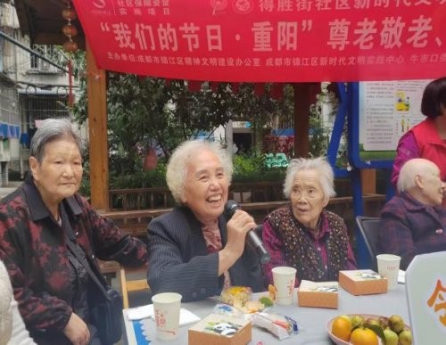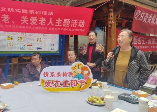 “邻里话家常”环节作为活动的开篇,由院委会德高望重的曾阿姨主持。曾阿姨以亲切的话语拉近距离,引导老人们围绕“重阳习俗”“邻里趣事”“健康养生”等话题畅所欲言。老人们纷纷打开话匣子,有的分享自己的重阳记忆,有的讲述邻里间互帮互助的暖心故事,还有的交流日常养生小技巧。现场笑声、掌声不断,浓浓的邻里情谊在欢声笑语中传递,让老人们在温馨的氛围中感受到了陪伴的温暖。