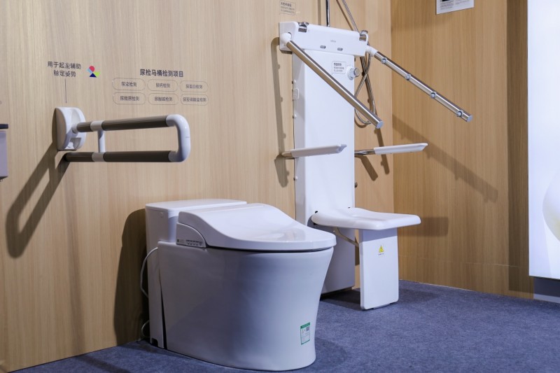 例如,升降浴室柜的精准调节技术,源自箭牌在机械结构领域的多年积淀,经过上万次耐疲劳测试,确保了不同体重使用者的安全与稳定;P9 智能坐便器的湿法尿液检测技术、升降助力器和紧急报警功能,其背后是箭牌在生物传感与智能算法领域的持续攻关;坐式恒温淋浴花洒,则依托箭牌在防滑技术领域的不断深耕。