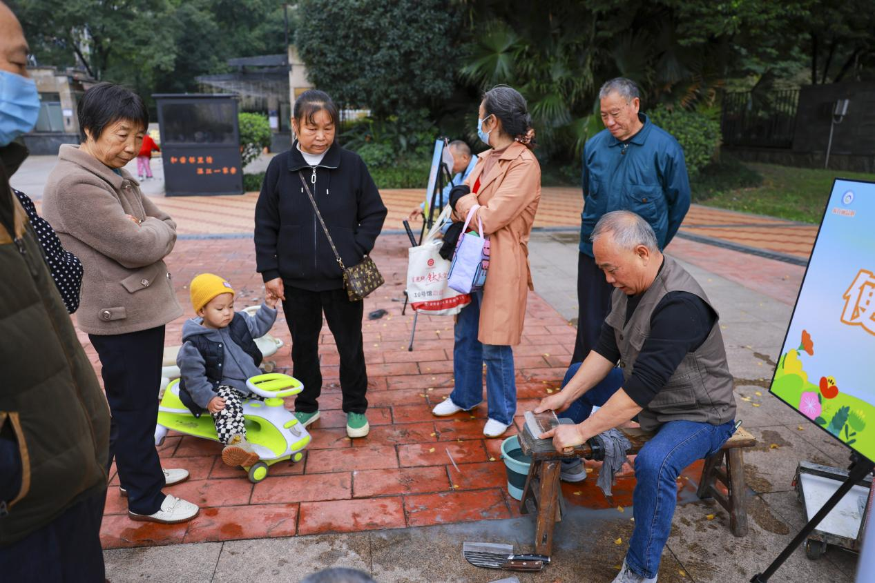 在便民服务区,社区积极挖掘内生力量,邀请社区达人参与,涵盖理发、手工贴膜、磨刀等多个项目。理发达人根据居民需求修剪发型,磨刀师傅耐心为居民打磨刀具,贴膜师为居民提供手机清洁和贴膜服务。服务过程中,达人们还主动分享“刀具保养技巧”“手机日常防护方法”等实用知识。磨刀师傅还手把手教居民判断刀刃是否锋利,居民之间也互相交流生活经验,现场氛围温馨融洽。