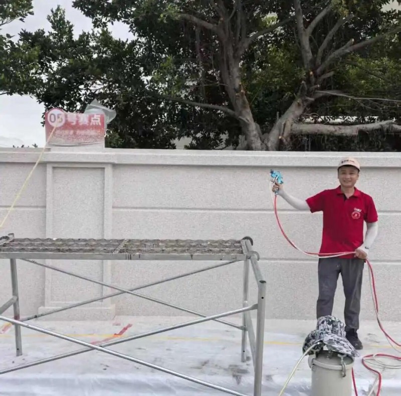 当被问及为何需要遵循“匠心精神”时,潘少彬给出了简洁却有力的回答:“‘只做优良工程,不做合格工程’,这是我一直坚守的原则。”在他眼中,仿石漆施工是一个环环相扣的过程,从打底到饰面,每一个环节都必须认真做好,才能最终呈现出完美的整体效果。