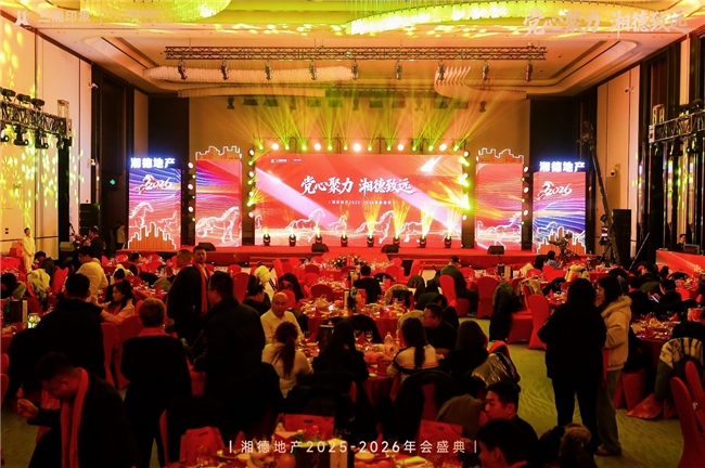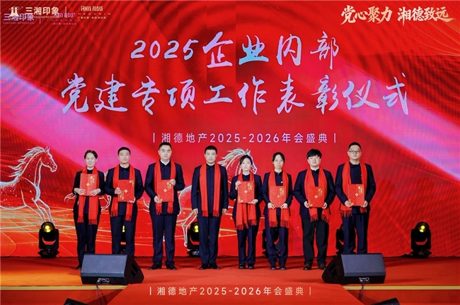 岁首聚势,征程新启。在房地产行业迈向高质量发展的关键阶段,湘德地产于2026年1月8日成功举办“聚力拓新路,深耕稳基石”年终述职暨“党心聚力,湘德致远”年度盛典。大会全面复盘了过去一年以党建为引领、以品质为根基、以业绩为标杆的奋斗历程,并对未来区域深耕、行业赋能与美好生活筑造进行了战略展望。全体员工、合作伙伴及媒体嘉宾齐聚一堂,共同回顾红色引领下的奋进足迹,绘制党业深度融合的发展蓝图。