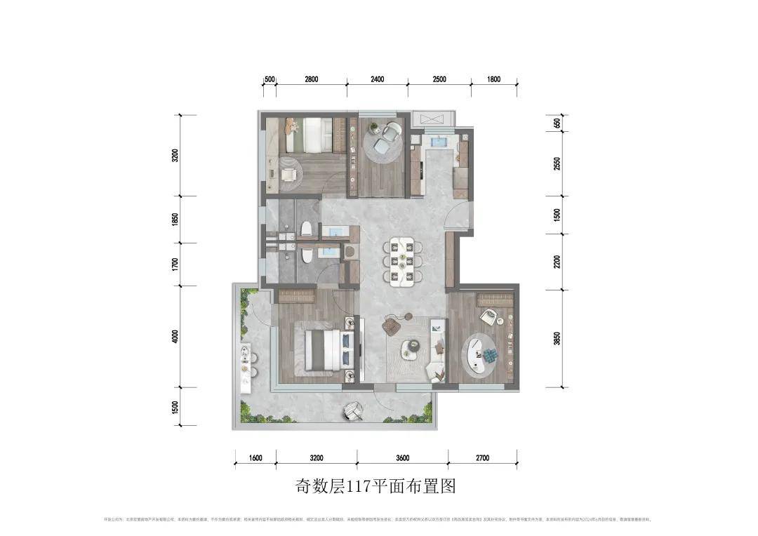 117㎡四居,南向三面宽,全明户型,带有L型拐角阳台,并且主卧套房有270度转角飘窗。这个户型比三居更加方正,功能区布局也更加实用合理。
