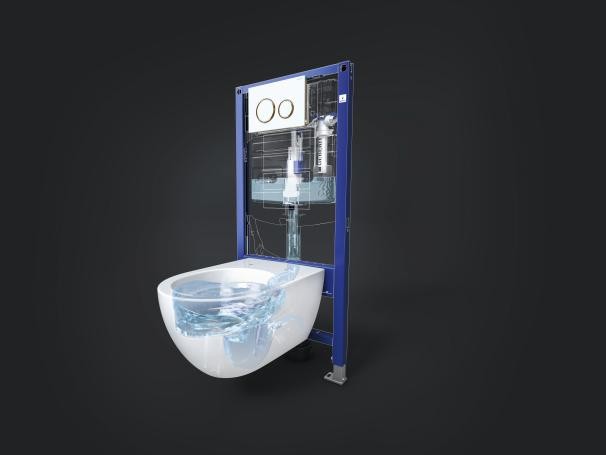 吉博力隐蔽式水箱入墙设计,仿佛给冲水声加上了一个厚厚的隔音罩,水箱内独特的旋转水流设计进水阀,也能进一步降低进水噪音。
